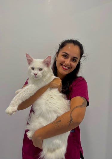 Lucie a rejoint notre équipe en septembre 2025 en tant qu’assistante vétérinaire. Disponible et à l’écoute, elle répond à vos questions et vous conseille sur l’alimentation, l’hygiène ou la prévention des parasites de vos compagnons. Elle assiste également les vétérinaires lors des consultations et des interventions chirurgicales, participe à la réalisation d’examens complémentaires et veille avec attention sur les animaux hospitalisés. C’est aussi elle qui partage sur notre compte Instagram, avec votre accord, les plus belles photos de vos compagnons !
