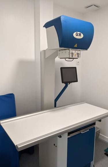 L'appareil de radiographies numériques nous permet de faire des clichés de nos patients et de les observer instantanément sur l'ordinateur.